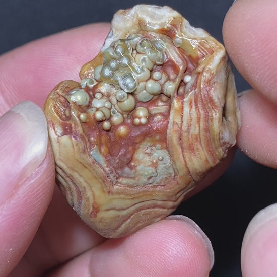 Gobi Desert Agate, found in Inner Mongolia, is a captivating gemstone formed from ancient submarine volcanic eruptions and magma. Shaped by relentless wind and sand in the harsh Gobi Desert, it boasts a smooth, lustrous surface with unique, intricate patterns. Its colors range from translucent to opaque, displaying vibrant hues of red, yellow, brown, purple, and more, making each piece visually striking and highly prized by collectors for its aesthetic and rarity.